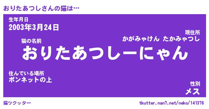 | ポケモン風あだ名 | 『オリチュウ』『オリタダネ』 |