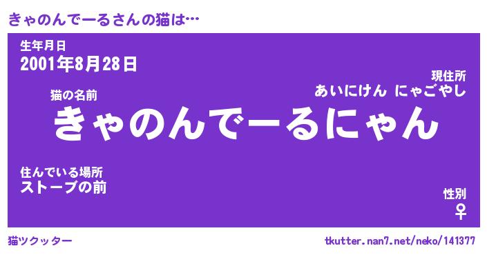 | 男性向けラノベタイトル風あだ名 | 『きゃのんでーるの憂鬱』 |