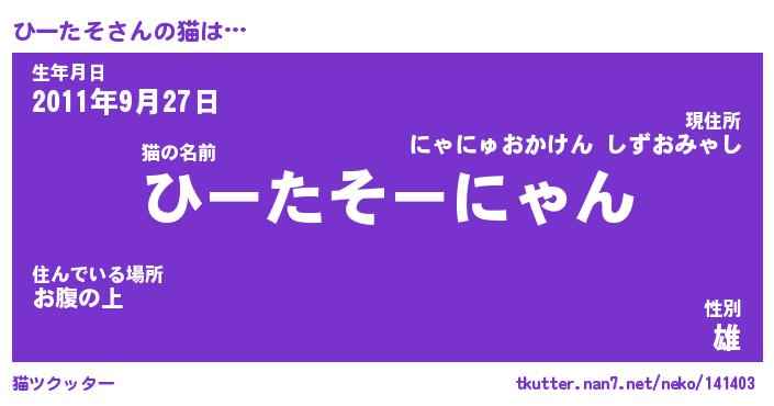 | 生年月日? …「くろねこ」 | 8月01日 10:16 |