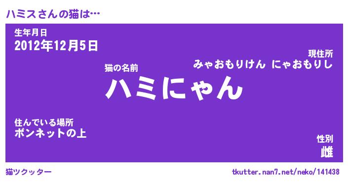 | ポケモン風あだ名 | 『ハミチュウ』『ハミスダネ』 |
