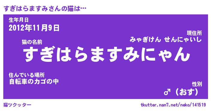 | 女子向けラノベタイトル風あだ名 | 『(仮)すぎはらますみのやんごとなき事情』 |