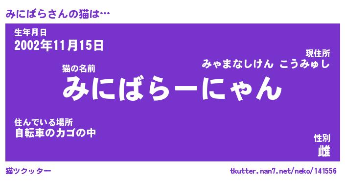 | 意味不明あだ名 | 『ペロリンみにばら』『永久保存みにばら』 |