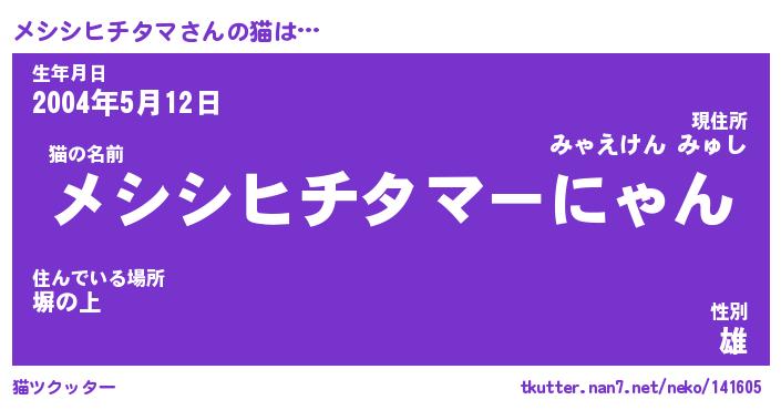 | ポケモン風あだ名 | 『メシチュウ』『メシシダネ』 |