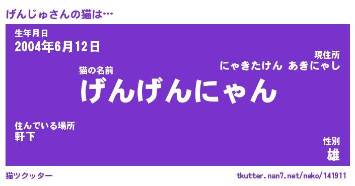 | ポケモン風あだ名 | 『ゲンチュウ』『ゲンジダネ』 |