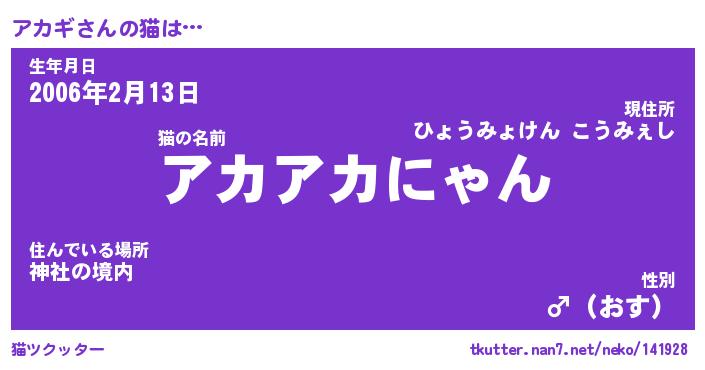 | ファンタジー風あだ名 | 『アカフェル』『エターナルアカギー』 |