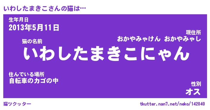 | 女子向けラノベタイトル風あだ名 | 『(仮)いわしたまきこのやんごとなき事情』 |