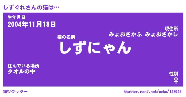 | 意味不明あだ名 | 『ペロリンしずぐれ』『永久保存しずぐれ』 |