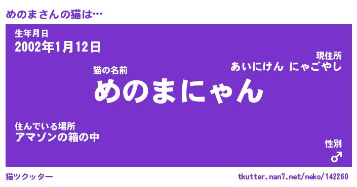 | ファンタジー風あだ名 | 『メノフェル』『エターナルメノマー』 |