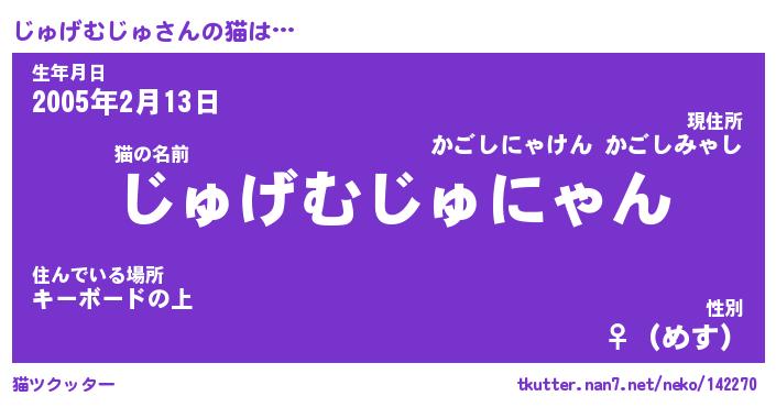 | ポケモン風あだ名 | 『ジュチュウ』『ジュゲダネ』 |