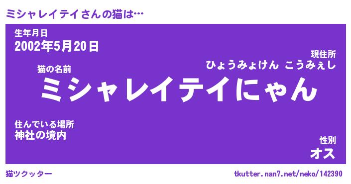 | 男性向けラノベタイトル風あだ名 | 『ミシャレイテイの憂鬱』 |