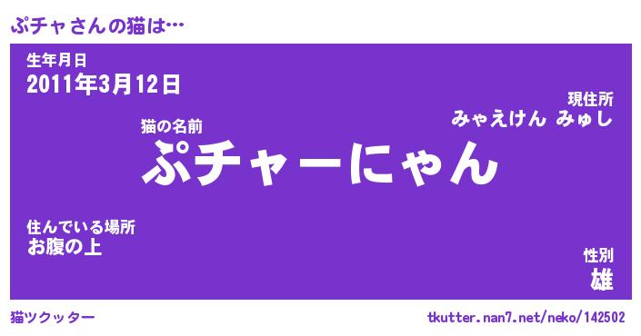 | ファンタジー風あだ名 | 『プチフェル』『エターナルプチャー』 |