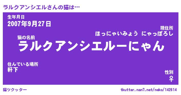 | 生年月日? …「くろねこ」 | 8月01日 10:16 |