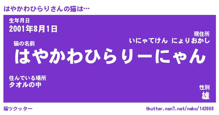 | 生年月日? …「くろねこ」 | 8月01日 10:16 |