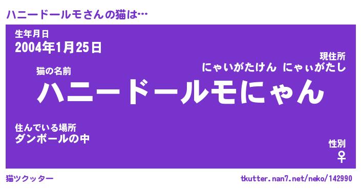 | 意味不明あだ名 | 『ペロリンハニードールモ』 |