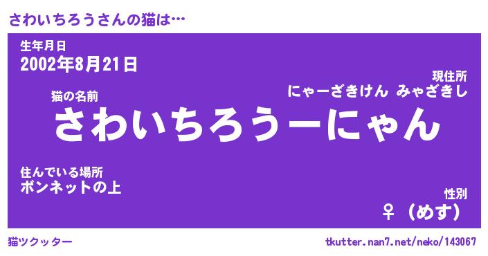 | 生年月日? …「くろねこ」 | 8月01日 10:16 |