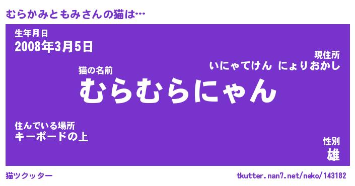 | ポケモン風あだ名 | 『ムラチュウ』『ムラカダネ』 |