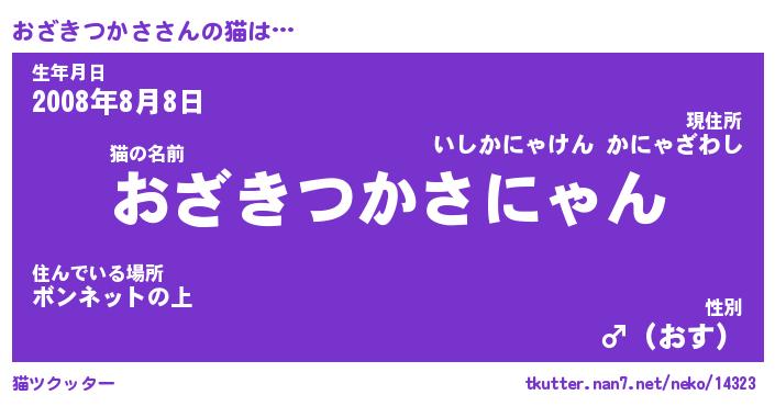 | 男性向けラノベタイトル風あだ名 | 『おざきつかさの憂鬱』 |