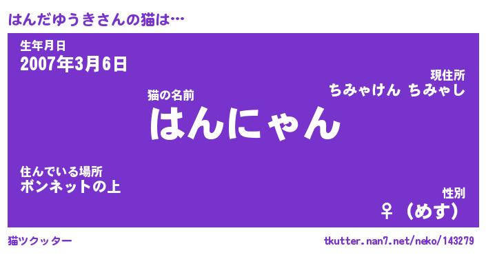 | ポケモン風あだ名 | 『ハンチュウ』『ハンダダネ』 |