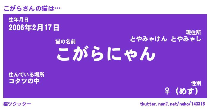 | 生年月日? …「くろねこ」 | 8月01日 10:16 |