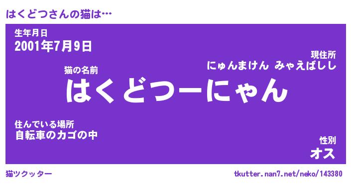 | 生年月日? …「くろねこ」 | 8月01日 10:16 |