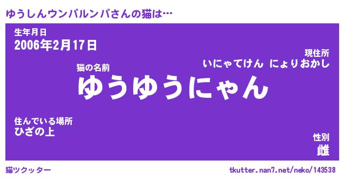 | ポケモン風あだ名 | 『ユウチュウ』『ユウシダネ』 |