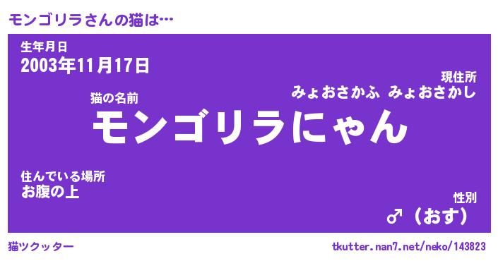 | 女子向けラノベタイトル風あだ名 | 『(仮)モンゴリラのやんごとなき事情』 |
