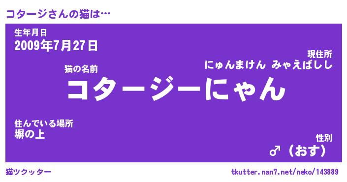 | ファンタジー風あだ名 | 『コタフェル』『エターナルコタージー』 |