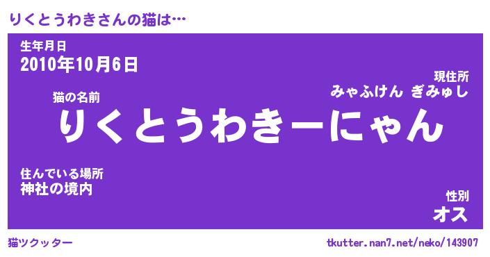 | 生年月日? …「くろねこ」 | 8月01日 10:16 |