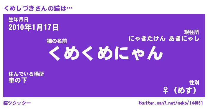 | ファンタジー風あだ名 | 『クメフェル』『エターナルクメシヅキー』 |