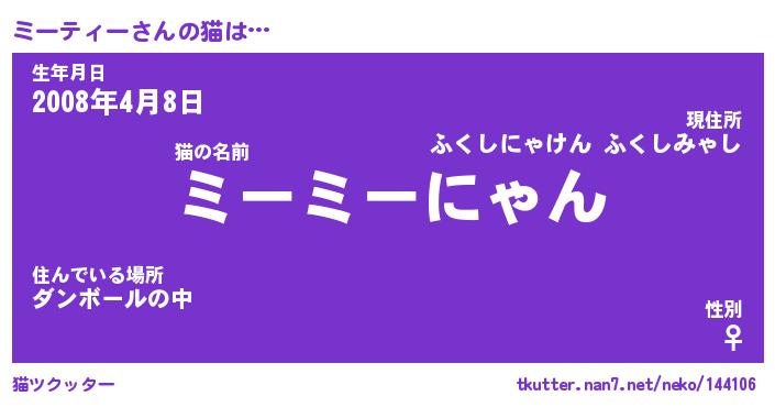 | 2回繰り返すあだ名 | 『ミーミー』『ミミーー』『にたにた』 |