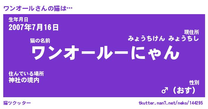 | ファンタジー風あだ名 | 『ワンフェル』『エターナルワンオールー』 |