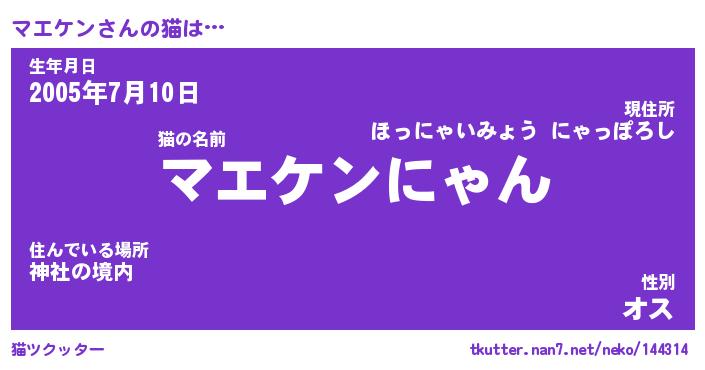 | ポケモン風あだ名 | 『マエチュウ』『マエケダネ』 |