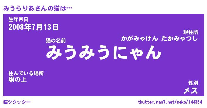 | ファンタジー風あだ名 | 『ミウフェル』『エターナルミウラリアー』 |
