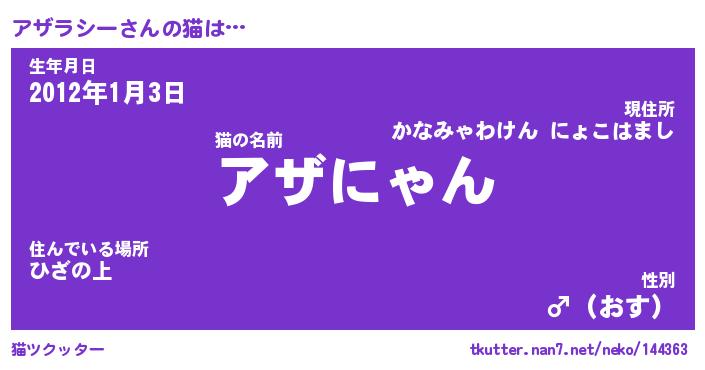 | ポケモン風あだ名 | 『アザチュウ』『アザラダネ』 |