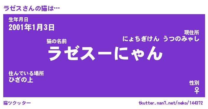 | ヘコむあだ名 | 『ラゼにゅー』『つくし』『ラゼお』 |