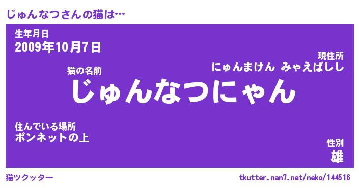 | ポケモン風あだ名 | 『ジュチュウ』『ジュンダネ』 |
