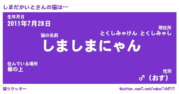| ファンタジー風あだ名 | 『シマフェル』『ファントムシマス』 |