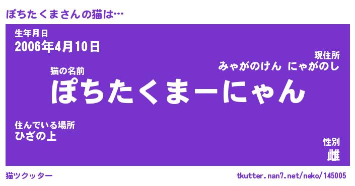 | ファンタジー風あだ名 | 『ポチフェル』『エターナルポチタクマー』 |