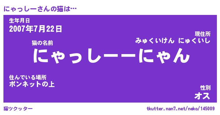 | 欧米人風あだ名 | 『マイケルにゃっしー』 |