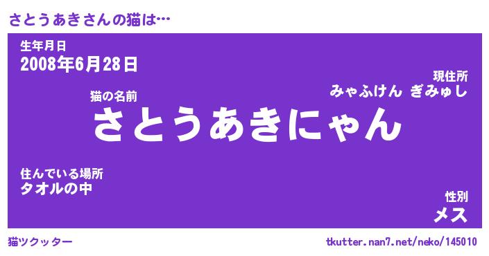 | 生年月日? …「くろねこ」 | 8月01日 10:16 |
