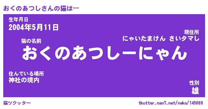 | 肩書あだ名 | 『おくのあつし御曹司』 |