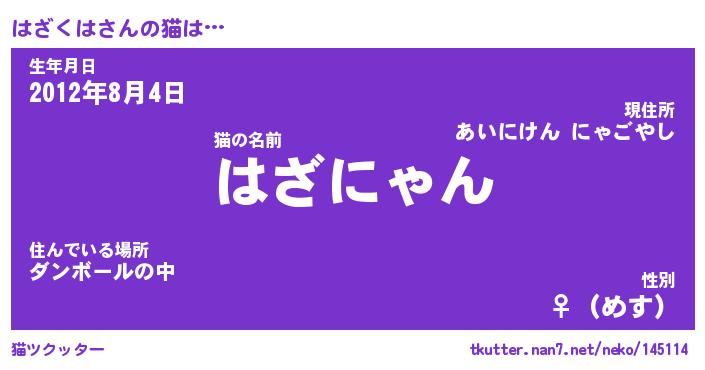 | 意味不明あだ名 | 『ペロリンはざくは』『永久保存はざくは』 |