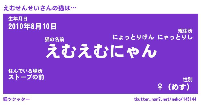 | ヘコむあだ名 | 『えむにゅー』『酢こんぶ』『えむを』 |