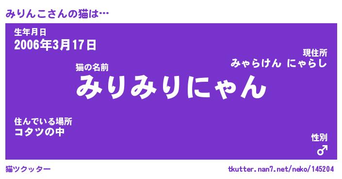 | 2回繰り返すあだ名 | 『みりみり』『みみりり』『ぬるぬる』 |