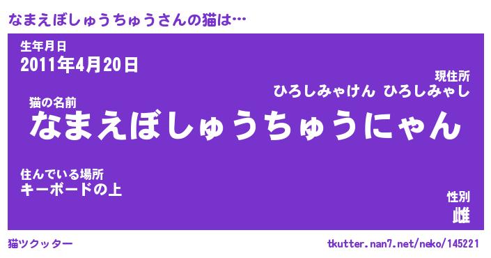 | 生年月日? …「くろねこ」 | 8月01日 10:16 |