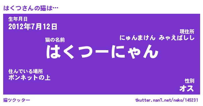 | 生年月日? …「くろねこ」 | 8月01日 10:16 |