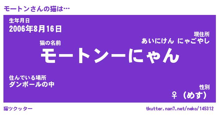 | 意味不明あだ名 | 『ペロリンモートン』『永久保存モートン』 |