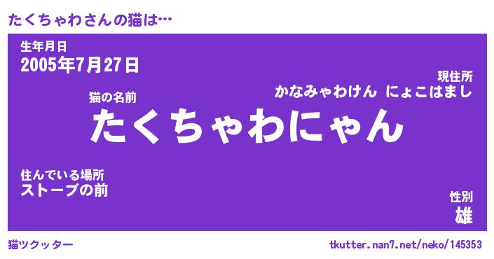 | ファンタジー風あだ名 | 『タクフェル』『エターナルタクチャワー』 |