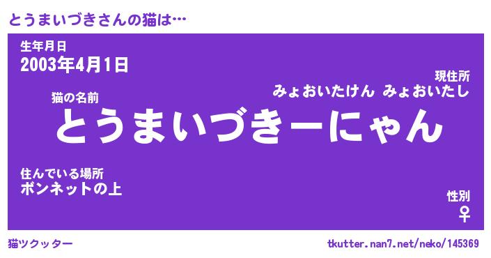 | ポケモン風あだ名 | 『トウチュウ』『トウマダネ』 |