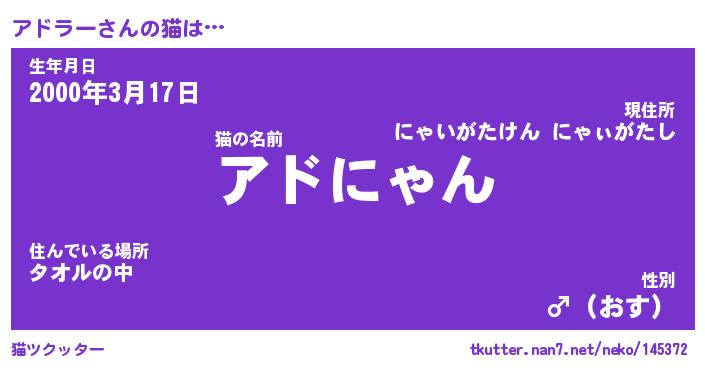 | ファンタジー風あだ名 | 『アドフェル』『エターナルアドラーー』 |